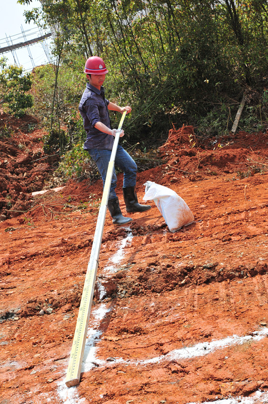 胡明同志在共青項(xiàng)目主動學(xué)習(xí)測量放線業(yè)務(wù)知識